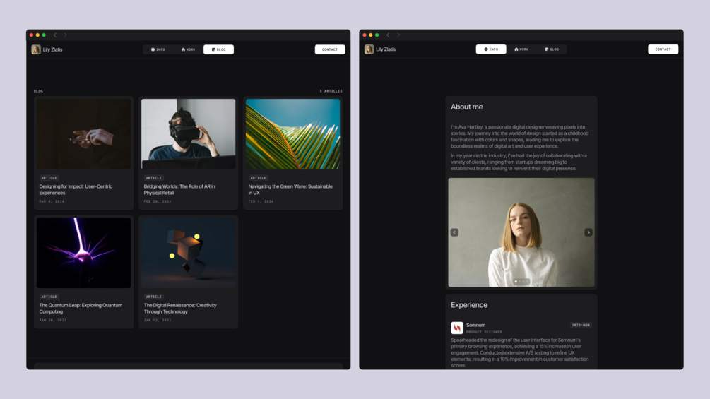 Utility is utilitarian, designed to encapsulate the full narrative of your career, whether you’re a senior professional or a newcomer to the design landscape. It seamlessly connects your latest projects with your educational journey in a clear and personable manner.